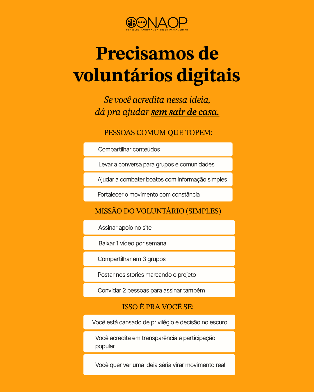 Se você apoia o CONAOP e quer ajudar a ideia a ganhar força, a gente tem um convite simples: